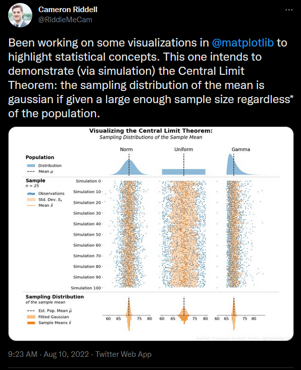Work through the Central Limit Theorem interactive explorer for about 15 minutes. Follow the instructions on the app and take notes and be prepared to share out what you learned/your take away message.